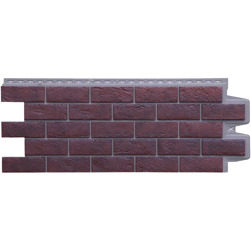 Для минимизации эффекта повторяемости рисунка при монтаже фасадных панелей форм «Состаренный кирпич» и «Клинкерный кирпич», панели необходимо размещать в шахматном порядке (смещение примерно на половину панели). Пример на рисунке.