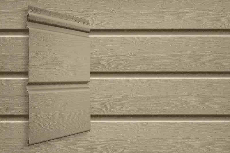 Double-брус - современное решение для облицовки фасадов здания, отличается увеличенной шириной панели и максимальной схожестью с клееным брусом. Усовершенствованный замок позволяет достичь более надежного сцепления панелей между собой. Реалистичная текстура сайдинга достоверно повторяет волнообразный рисунок годовых колец натуральной древесины, а также природный узор сердцевинных лучей дерева. Орнамент панелей, воссоздающий слои и волока ценных пород, подчеркнет красоту всего загородного дома.