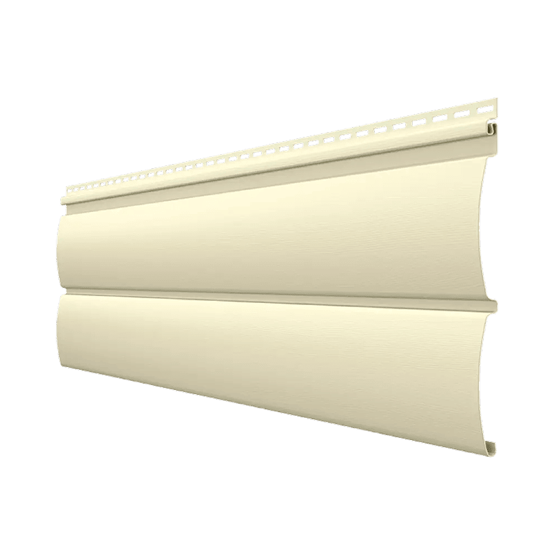 Виниловый сайдинг — нетоксичный материал, трудно поддается воспламенению, не подвержен коррозии. Можно выбрать из пяти цветов: акация (панели молочного оттенка), мимоза (приглушенный желтый цвет), гортензия (нежный оттенок синего цвета), жасмин (яркий белый) и эдельвейс (легкий серый цвет). Прослужит долго: гарантия на сайдинг брус — пятьдесят лет. При монтаже формируется вентилируемая подсистема: под сайдингом не будет плесени и не появится влага на фасаде. Легкий в уходе, прочный к ударам и стойкий к атмосферным воздействиям.