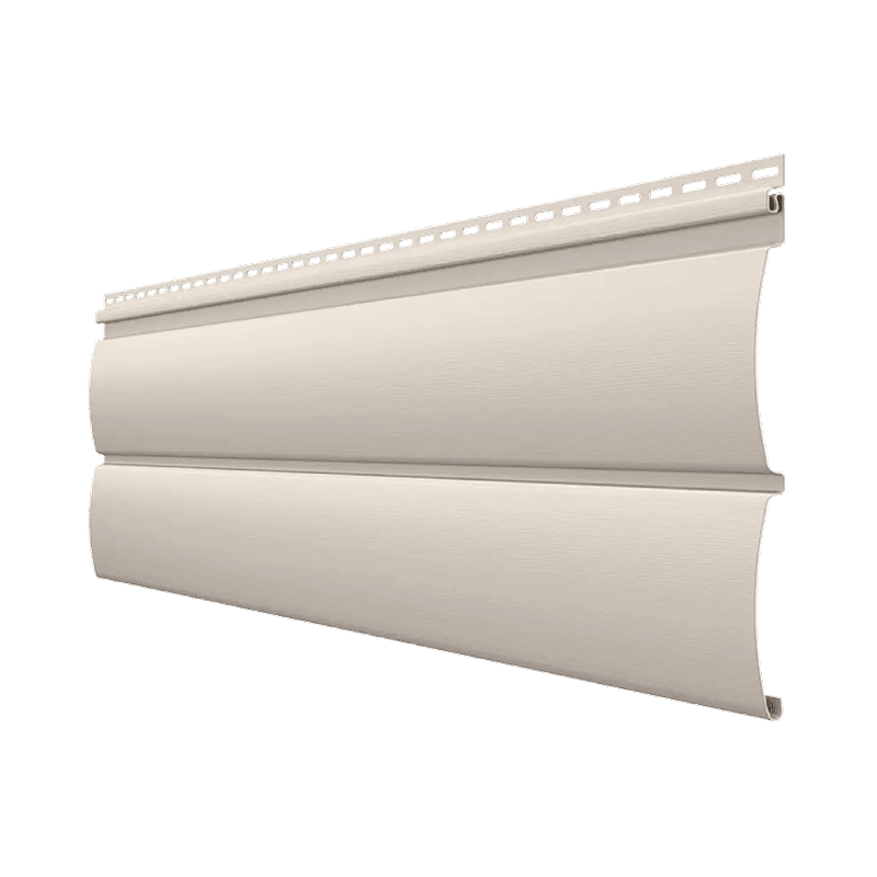 Виниловый сайдинг — нетоксичный материал, трудно поддается воспламенению, не подвержен коррозии. Можно выбрать из пяти цветов: акация (панели молочного оттенка), мимоза (приглушенный желтый цвет), гортензия (нежный оттенок синего цвета), жасмин (яркий белый) и эдельвейс (легкий серый цвет). Прослужит долго: гарантия на сайдинг брус — пятьдесят лет. При монтаже формируется вентилируемая подсистема: под сайдингом не будет плесени и не появится влага на фасаде. Легкий в уходе, прочный к ударам и стойкий к атмосферным воздействиям.