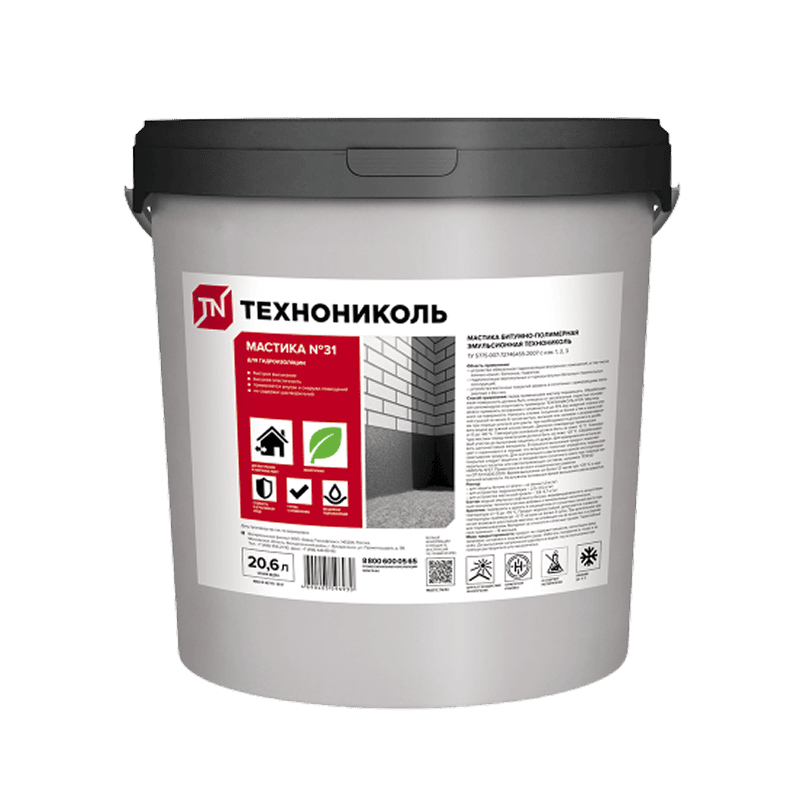 Мастика эмульсионная битумно-полимерная ТЕХНОНИКОЛЬ №31 – это готовый к применению материал, являющийся водной эмульсией нефтяного битума, модифицированного искусственным каучуком, технологических добавок и минеральных наполнителей.