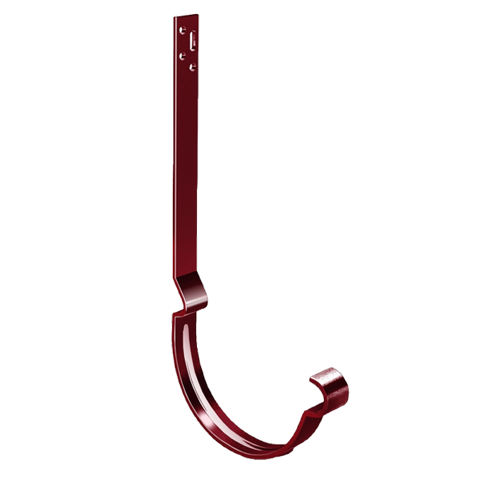 Служит для подвеса желоба на стропила, устанавливается до монтажа кровельного материала. Крюк длинный полоса производится из горячеоцинкованной стали толщиной 4 мм с последующим нанесением полимерного покрытия.
