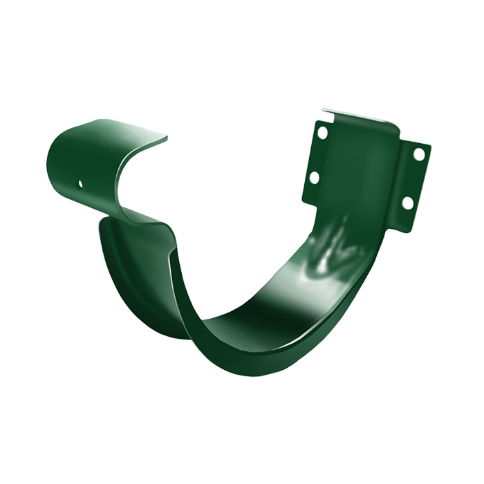 Служит для подвеса желоба на лобовую доску. Устанавливается как до, так и после монтажа кровельного материала. Выполнен из оцинкованной стали (толщина 1 мм) с полиуретановым покрытием.