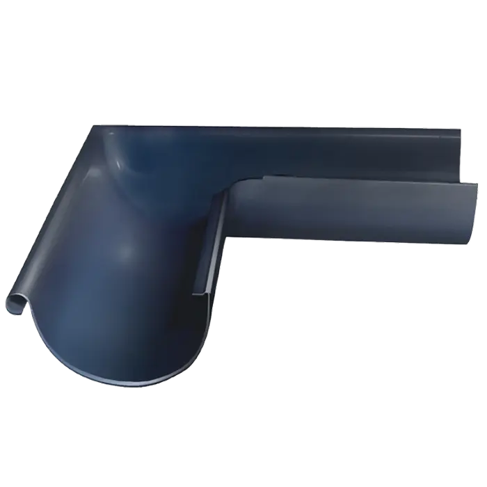 Внешний угол желоба применяется в местах, где необходимо провести желоб по внешнему углу здания под углом 90°. Идеально подходит для жилых и коммерческих строений с прямоугольной или сложной конфигурацией кровли, помогает сохранить целостность водосточной системы и фасада.