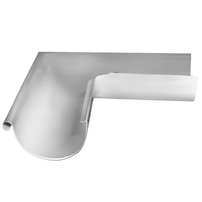 Внешний угол желоба применяется в местах, где необходимо провести желоб по внешнему углу здания под углом 90°. Идеально подходит для жилых и коммерческих строений с прямоугольной или сложной конфигурацией кровли, помогает сохранить целостность водосточной системы и фасада.