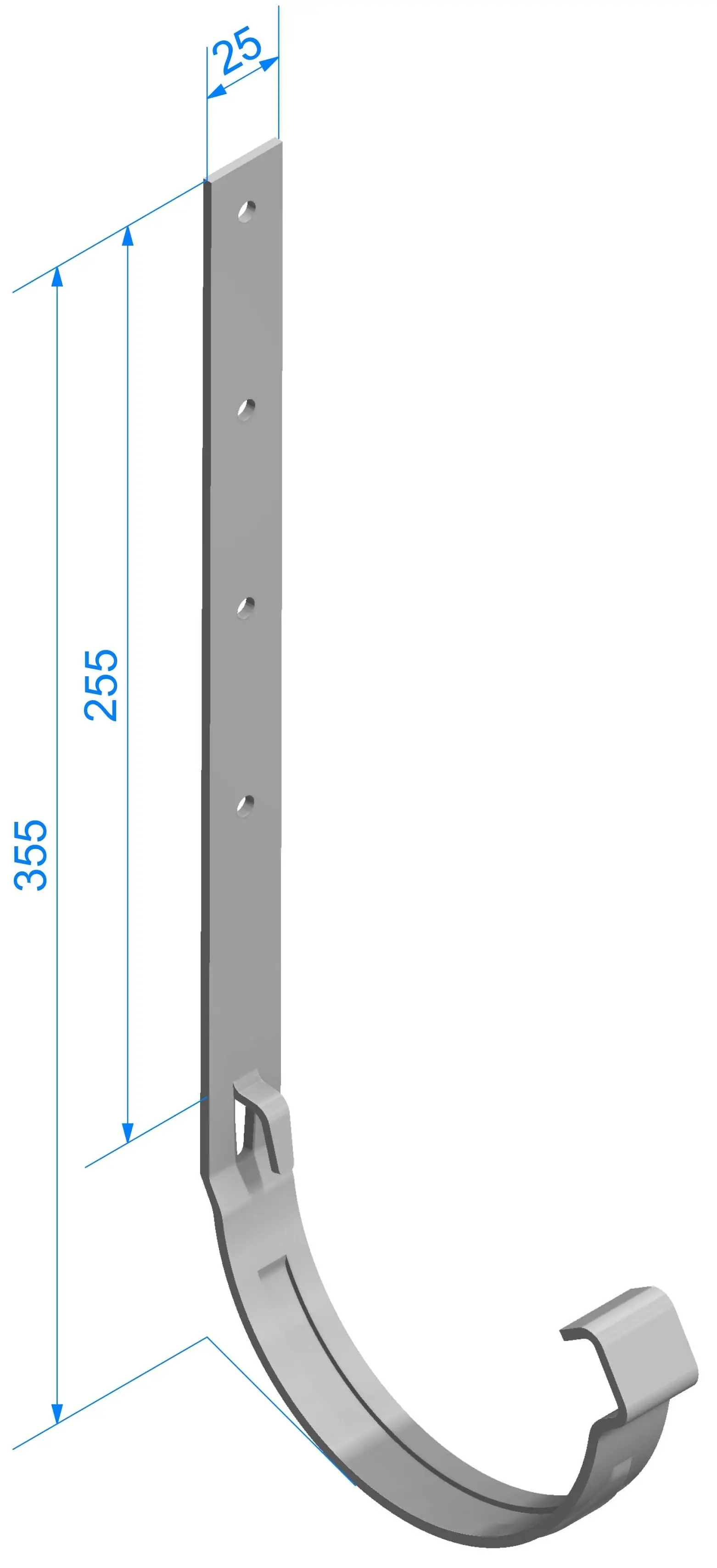 Металлический кронштейн предназначен для установки желобов на крышах, где отсутствует лобовая доска. Данный держатель позволяет надежно закрепить водосточную систему непосредственно на стропильные ноги или другие подходящие части конструкции крыши, обеспечивая необходимую стабильность и прочность. Благодаря такому способу монтажа металлические кронштейны незаменимы для создания долговечных и эффективных систем водоотвода на объектах с нестандартной архитектурой или индивидуальными требованиями к монтажу.