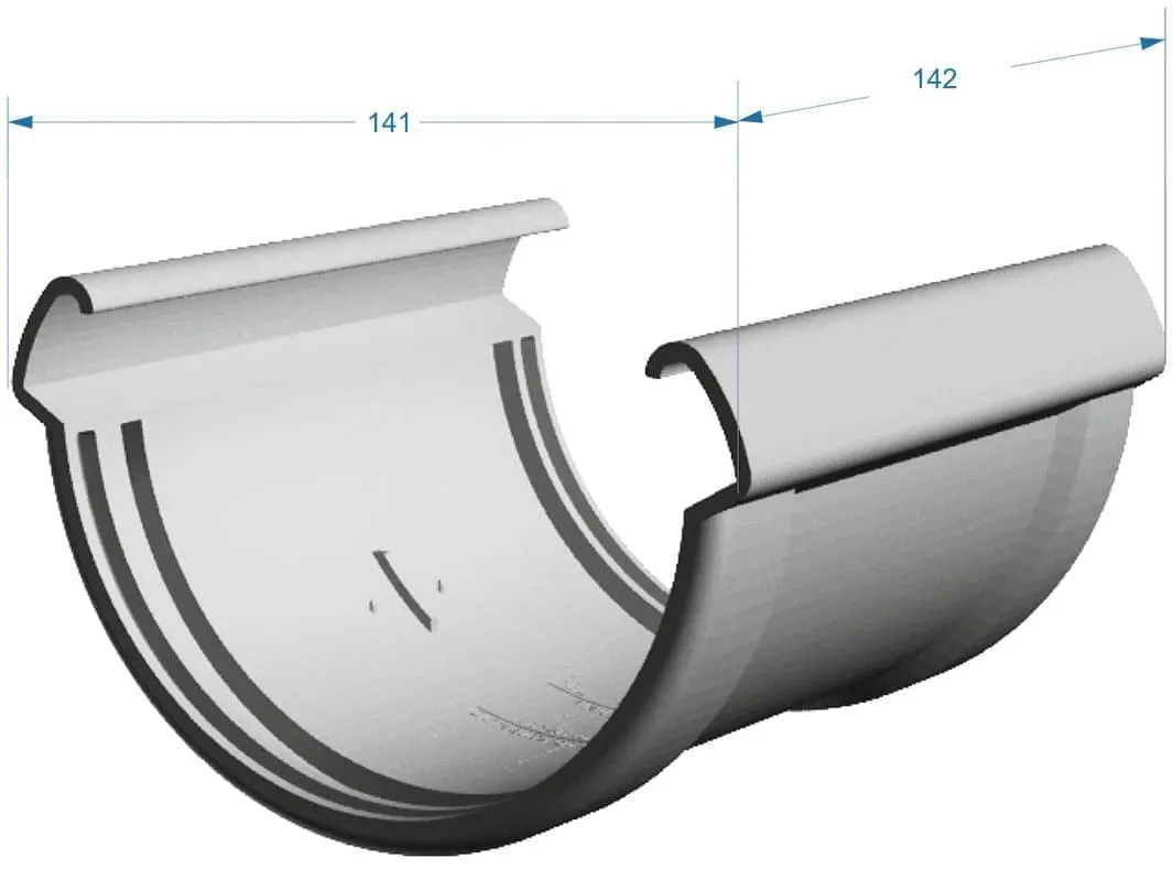 Соединитель желобов — это необходимый элемент водосточной системы при монтаже на крышах, длина сторон которых превышает 3 метра. С его помощью обеспечивается последовательное, герметичное и надежное соединение нескольких секций желобов, что позволяет организовать единый и непрерывный водоотвод по всему периметру здания. Такой подход гарантирует эффективное отведение дождевой и талой воды, предотвращая застой влаги и минимизируя риск появления протечек в местах стыков. Соединители желобов особенно актуальны при обустройстве сложных или протяженных кровель, где нельзя обойтись одним трехметровым элементом.